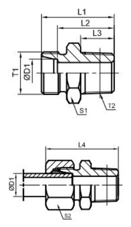 | T1 | T2 | D1 | L1 | L2 | L3 | L4 | 1 | S2 | g/pc | (bar) | ||