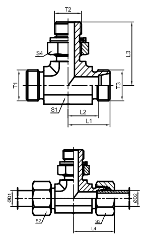 Metric Male Adjustable Stud Ends ISO 6149 Branch Tee