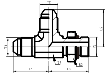 JIC Male 74° Cone / SAE O-Ring Boss L-Series ISO 11926-3 Run Tee